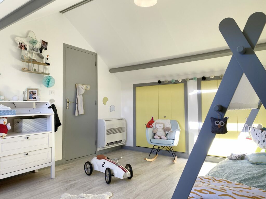 Chambres mansardées, l’option d’une climatisation console a été retenue.